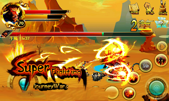 Journey Wars _ Super Fighting is a side scrolling action game themed by the Journey to the West, which has Sun Wukong as the hero of the game! The game uses the newest action engine and original drawing! The character of Sun Wukong has been changed, and so do the effects of combos! Anger Point and the systems of skill trees and power-ups give players more fun! Come on and join us!